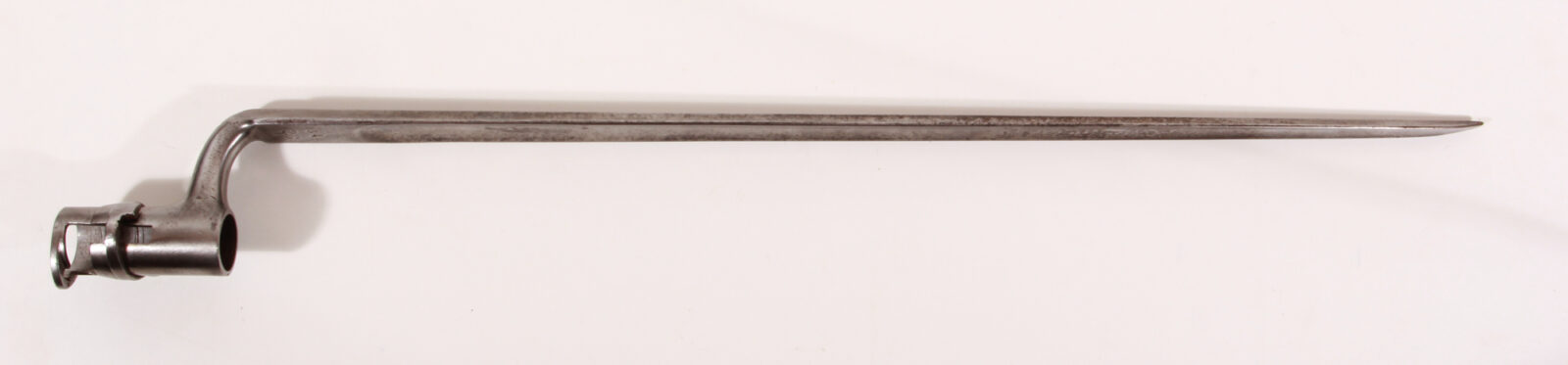 Dreikantklinge, Tülle mit originalem Bajonettring. Fehlschärfe mit Regimentsstempel sowie am Bogen Seriennummer. Länge:58,5 cm. Minimale, gereinigte Rostpünktchen.